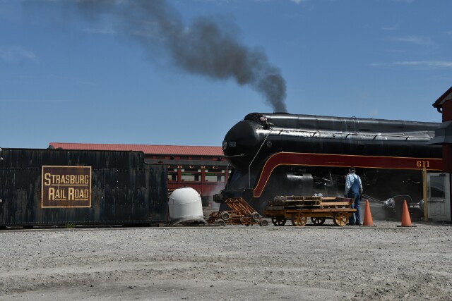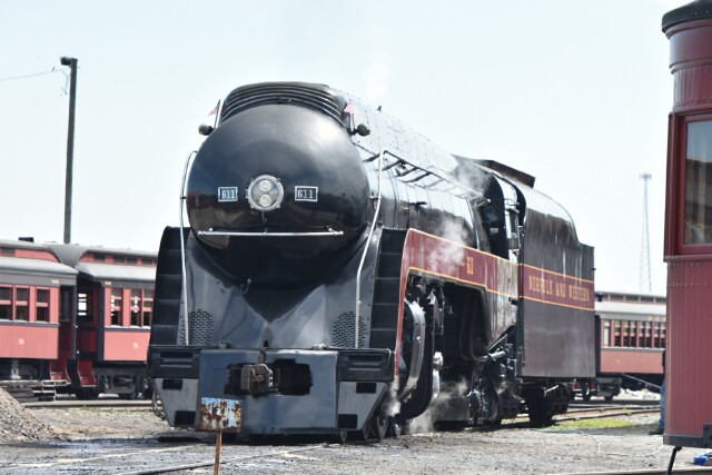 | Norfolk and Western J Class #611 has just been awakened in the yard, ready for its last day of work on the railroad. |