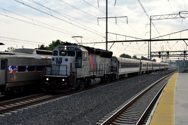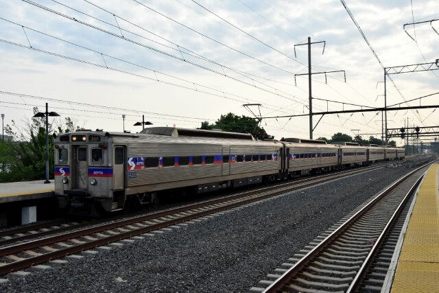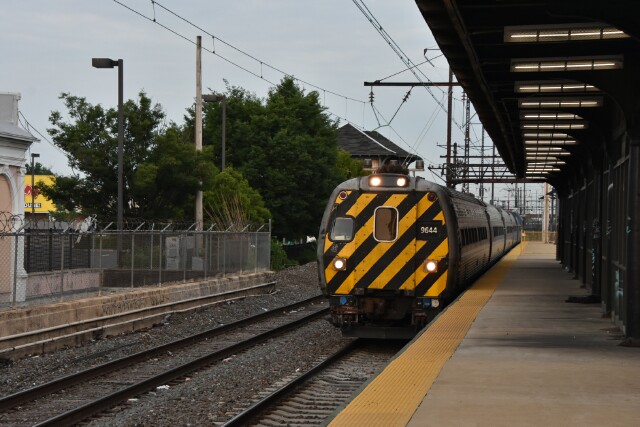 | Amtrak Keystone led by cab car AMTK 9644 ... |