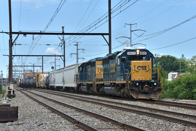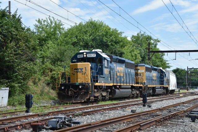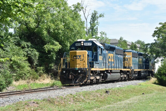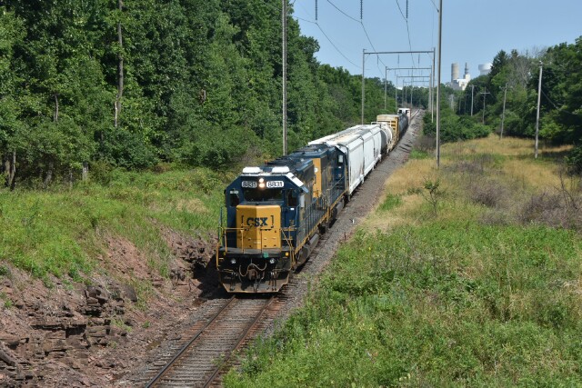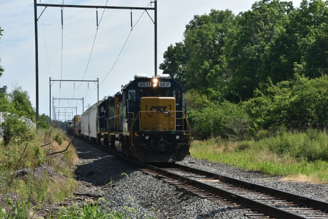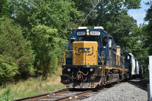 | The Fourth of July holiday messed with the schedule of CSX L042, and to fix this, a U042 extra was called for Sunday July 7 2024, here heading down the Stony Creek Branch at North Wales Road overpass in West Point PA. |