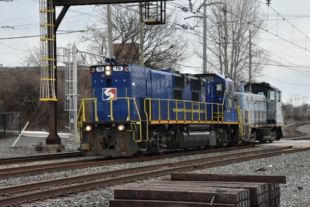 | After dropping off 52 at the station, Extra 70 crossed over to Track 1 ... |