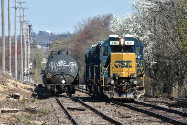 | The next day April 9 CSX U042 was called to take the tie gondolas down the Stony Creek Branch. |