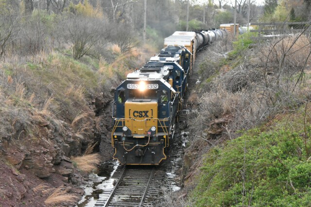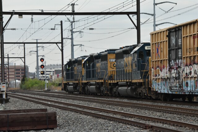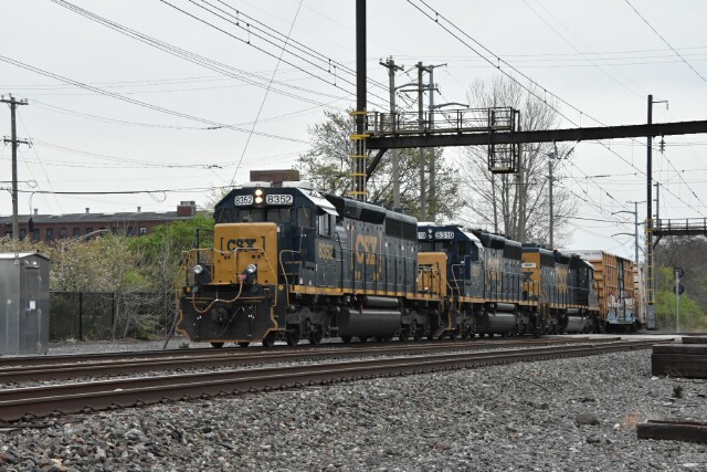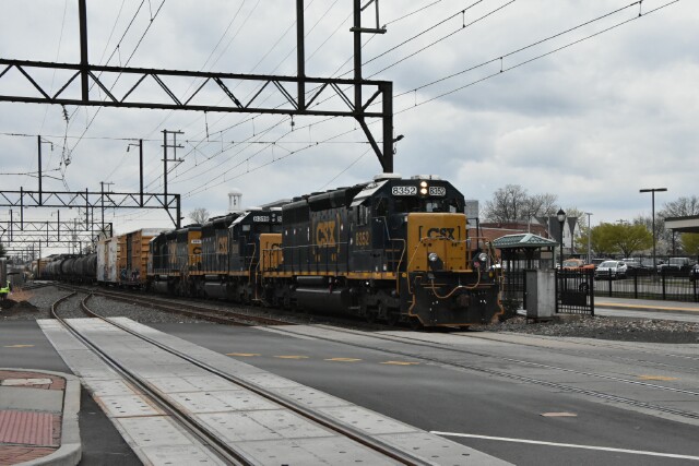 | April 15 2025 After waiting at Conte Luna for 2 hours, at 8:40 a very late CSX L042 finally got the signal from the dispatcher to come down to CP Ford on the NS Morrisville Line Connecting Track for a trip across the SEPTA Norristown Line to CP Elm and the Stony Creek Branch. |
