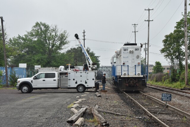 | May 16 2025 Fridays are usually busy days in Lansdale with the arrival of new cars on CSX L042, but L042 ran yesterday so this Friday became maintenance day, starting with adding sand to GP39-2 NHRR 901. |