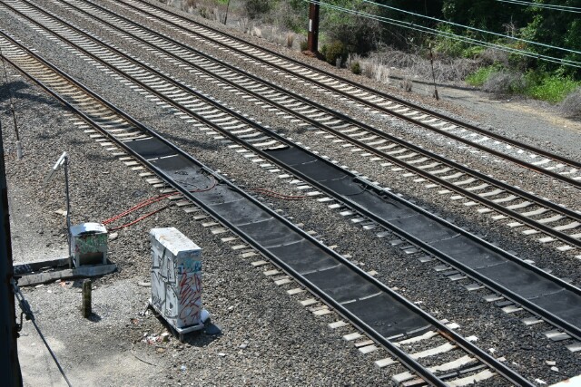 | For those not familiar with the area, it is the site of flange lubricators on tracks 1 and 2 heading into Torresdale curve. Not long ago there was also a switch to a siding servicing Philadelphia Water Department's Baxter Water Treatment Plant, but that was removed when Track 1 got concrete ties. |