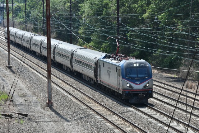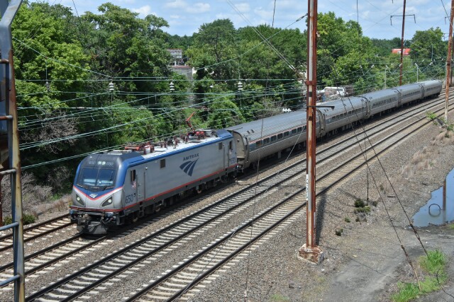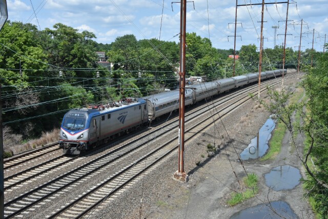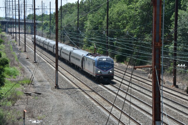 | July 12 2025 My daughter's car had trouble on the way to a bridal shower, so the call goes out to dad. The car was parked at Linden Avenue in Philadelphia, so I drive down to the city to give her my car so she could go to the shower while I wait for a tow, which would take over an hour to arrive. Fortunately the car was just a block from the NEC and I had my camera, so the time went by pretty quickly, starting with an eastbound Keystone with cab car AMTK 9636 leading on Track 2. |