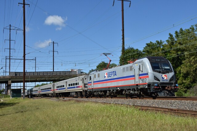 | August 27 2025 SEPTA ACS-64 SPAX 902 Amtrak Northeast Corridor at Eddington Station |