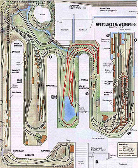 What follows is a map of the Los Angeles Model Railroad Society's Great Lakes & Western Railroad.
