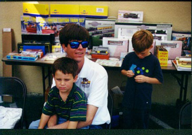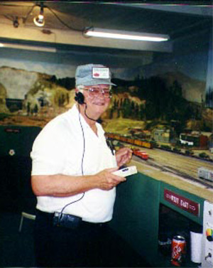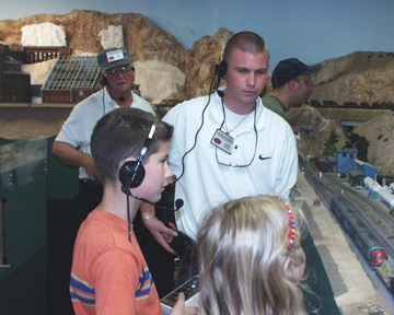 Left to right: Jim Ryan (Road Engineer-background), Timothy Gayvert (Engineer Trainee) and sister, and Tommy Batts (Engineer Instructor/Pilot) with visitor in background.