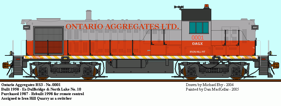 | NUMBER | MODEL | BUILDER | YEAR | HP | 0001 | RS3 | MLW | 1958 | 1,600 | Ex-D&NL No. 10 - Leased 1985-87, purchased 1987 - Rebuilt to remote operation in 1998 | 0002 | GP30 | GMD | 1963 | 2,250 | Ex-CPR No 5000 - Purchased in 1998 | 0003 | GP35 | GMD | 1965 | 2,500 | Ex-CPR No 5019 - Purchased in 1998 |