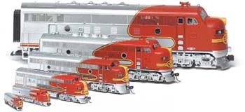 scale. Starting on the left, the smallest locomotive is in Z scale (1:220