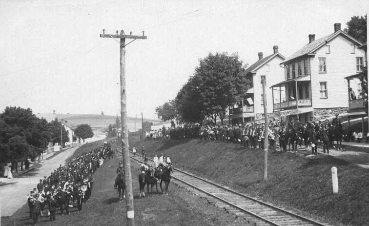 yoeparad.jpg - A parade forming along the tracks in Yoe, Pennsylvania