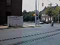 Now we're looking northwest at the southwest corner of Market and Pershing. You can see the signal control boxes for the crossing gates at Market Street, which are also tied in with the traffic signals. The croosing gate that you see is probably the most repaied and replaced crossing gate in the county. All trucks must turn off of Market onto Pershing here, and that gate gets hit fairly regularly. The Ma & Pa's signal maintainer is a regular fixture at this intersection! |