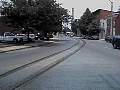 I'm standing on the southeast corner of Philadelphia and Pershing, looking south. The street trackage continues. The second track was located on the other side of the double yellow line. I can remember both tracks being there, but I don't remember when they pulled it out. |