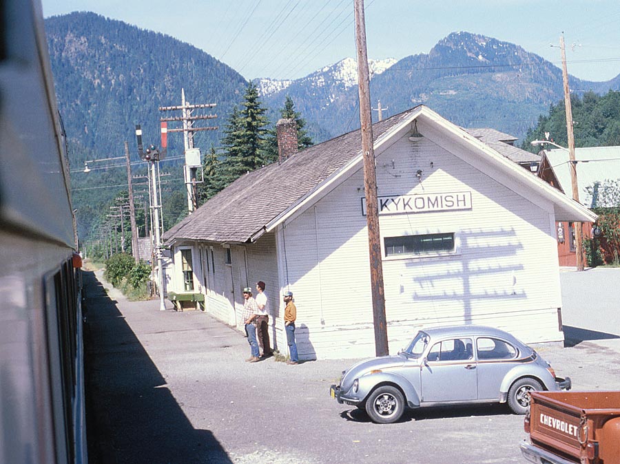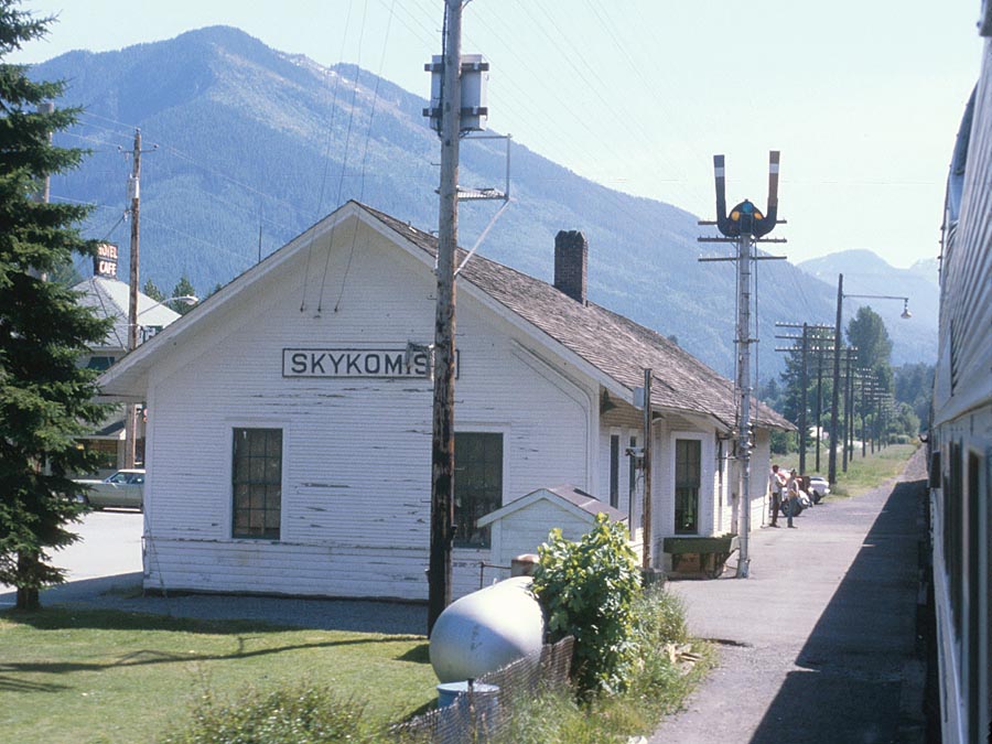 Coast Hiawatha we have 2 views of the Great Northern station at Skykomish, WA west of Cascade Tunnel. GN's electrification extended from Wenatchee to