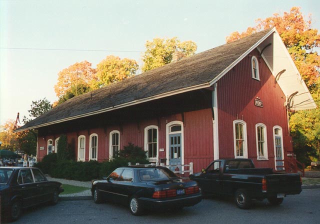 Kent, Connecticut The historic trackage of the Housatonic Railroad became a part of the far flung New York, New Haven & Hartford in the later part of the 1800’s. Western Connecticut had certainly seen its share of railroad companies. A virtual spider web of rail lines crisscrossed the state and wove together the old colonial era towns and villages and newer small towns founded during the industrial boom times of the 19th century. The New England country depot is a classic in and of itself. Like the famous New England covered bridge, or the village green with the local church, or a town meeting hall with a black faced clock in the steeple, country depots are a link back in time. Harking back to the post Civil War era, these wonderful buildings were almost always constructed out of wood. Stations built in the 1870 era were becoming more standardized, but often still had unique details. In typical Victorian style, they usually had very steep pitched roofs (often wood shingled as well) with fancy wood or iron brackets supporting the large overhangs. Tall rounded top windows were common, and neat paneled doors were often found in these structures. Many of these details reflected the booming machine age, being mass produced in factories primarily located in the cities of the Northeast. Heated by iron pot bellied stoves, lighted by kerosene lamps and outfitted with a bay window on the track side, they were found every few miles along the track. A lower quadrant semaphore signal often stood next to the tracks, and controlled by the depot agent. The sound of the telegraph key and distant whistle of a steam locomotive announced the daily trains. Built circa 1872, the Kent, Connecticut depot is essentially unchanged on the outside. One can imagine a late afternoon in August. A telegraph key is clicking through an open window while summer songbirds chirp in the nearby trees. In the distance, the lonely whistle of a steam locomotive echoes in the valley. All is right with the world. Since the surrounding areas were almost always agricultural in nature, milk traffic and locally grown produce were important freight. In those days the milk train was anything but slow. Often they were the fastest accommodation to be found on any railroad. This traffic was a money maker, and in the days before mechanical refrigeration, getting the milk and produce to market quickly was mandatory. Mixed trains brought in the odd car of coal or lumber or feed. On its end would be tacked a wooden coach or combine bringing the city newspapers and the U.S. Mail and Aunt Mabel for a summer visit. If a community was on a mainline, there would be the added excitement of the railroad’s premier passenger expresses. Hanging about the depot taking this all in was a ritual of daily life for adult and child alike. In between fishing or "skinny dipping", train watching at the depot were the things small town boys could do on those hot lazy summer days of long ago. Wouldn’t it be neat to revisit just such a day, down at the depot?