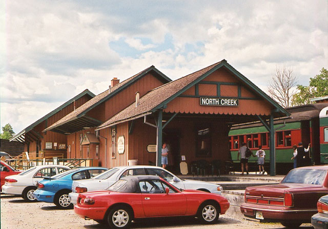 North Creek, NY A small country station in the remote Adirondack area of North Creek, NY played a pivotal role in American history. The North Creek depot would witness the arrival of the first great President of the 20th Century, Theodore Roosevelt. On the early morning of September 14, 1901, Roosevelt was on a nighttime journey from Newcomb, through Minerva back to North Creek. An urgent message from Buffalo had arrived from Elihu Root, Secretary of War: "The President appears to be dying and members of Cabinet in Buffalo think you should lose no time in coming." McKinley had been shot in Buffalo, NY at the Pan American Exposition on September 6. At first, his wound was not felt to be life threatening, and the President had rallied. Roosevelt had been in Buffalo, arriving the day after the assassination attempt. Having been assured by the President’s surgeon that McKinley was out of danger, Roosevelt left Buffalo by train on September 10 to join his family vacationing in the Adirondack’s at the Tahawus Club a quite remote wilderness area near Mt. Marcy. This location is some thirty five miles north of North Creek, terminus of a Delaware & Hudson branchline from Saratoga Springs. To reach North Creek, Roosevelt endured a 12 mile hike, one buckboard and two buggy rides at night to cover the thirty five miles back to the railroad at North Creek. Upon arrival at the station in the early morning hours Roosevelt learned that McKinley had died at 2:15 am via a telegram from the Secretary of State John Hay. He immediately departed North Creek on a special train for Buffalo. That afternoon, in Buffalo at the home of Ansley Wilcox on Delaware Avenue, Theodore Roosevelt became the 26th President. Built in 1872, the wood frame depot at North Creek was already a landmark of sorts when the momentous events surrounding Teddy Roosevelt’s assuming the Presidency occurred. Delaware & Hudson’s North Creek branch was built to tap timber and garnet deposits. The area was first settled in 1793 by lumbermen, who used the creek to float logs downstream to the Hudson River. A ninety foot turntable was located here, and in 1903 the freight station was added. The depot served the surrounding Adirondack mountain area for many years with dependable rail service. In 1937, Delaware & Hudson began operating winter snow trains, taking skiing enthusiasts from New York City for weekend holidays in the mountains. Snow conditions and thermometers were even posted in Grand Central Terminal to let patrons know of the current ski conditions at Gore Mountain near North Creek. Today, the Riverside to North Creek section of the line has been reopened by the Upper Hudson River Railroad, now in it’s second year of operation, and the depot is now restored and opened as a museum. The adjoining freight house is used as a gift shop. Teddy Roosevelt would never return to this part of the Adirondack Mountains, but the momentous events of September 14, 1901 have forever earned the depot at North Creek a place on the National Register of Historic Places.