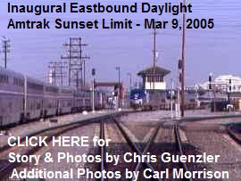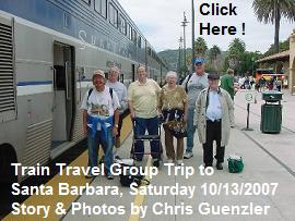 After the October 24, 2005, Meetup, we all went to the Fullerton Santa Fe Depot to greet Amtrak President David Gunn as he arrived in the Amtrak corporate car on the tail of the eastbound Amtrak Southwest Chief. People at the event included: Ken Ruben, Chris Parker, Harold Penensen, Dan Dalke, William Puhl, Mary Pearl Puhl, Stephen Grande, Ray Burns, Margaret Monroe, Daniel Monroe, Pat Moran, L.R. Smithline, Chris Guenzler, Winston W. Walker, Art Tomlin, and Ross Moore, Jr. Click each of the above images for larger photos from that Oct 24, 2005 OC Train Travel Meetup.
