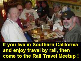 What is the Rail Travel Meetup Group? The Rail Travel Meetup Group is not a passenger rail advocacy group nor a nuts & bolts railfan group. We are just a bunch of people that like to get together and discuss our rail travel experiences in a relaxed atmosphere over some food and drinks! If you like to travel by rail, or are interested in getting started in rail travel, then you should come to our Meetup! If you have questions about travel on Amtrak, VIA Rail Canada, or on most other excursion and tourist railways, bring your questions to the Meetup. Someone will probably have answers to your questions! There are no application forms and no dues. This is a "no pressure" Meetup without speakers or any set agenda. We'll just be talking about wherever the conversations take us, though we will try our best to keep the topic on rail travel! Just show up on the 4th Monday of each month at 5:30pm whenever it fits your schedule. Some of us are there at almost every Meetup! Each Meetup will end around 6:30pm. You are welcome to join some of the members who like to wander over to the Fullerton Amtrak Station after the Meetup to watch the arrival and departure of the eastbound Amtrak Southwest Chief. What a great way to end the evening! Come to the Meetup by rail! Fullerton has extensive rail and bus service. You can get to Downtown Fullerton from many parts of Orange, Los Angeles, San Diego, Riverside, San Bernardino and Ventura Counties by either Amtrak or Metrolink trains, or in combination with other public transit rail and bus systems. Numerous OCTA bus routes also serve Downtown Fullerton. For exact schedules and routes, visit Amtrak.com, MetrolinkTrains.com, and www.OCTA.net If you would like to find out more about the Rail Travel Meetup Group and some of its members, click here to go to the Rail Travel Meetup Group website. Although not required in order to attend the Meetups, you can "officially" join the "Rail Travel Meetup Group" at the above link and will then be able to let the rest of the group know more about yourself and will be kept informed about group activities and members.