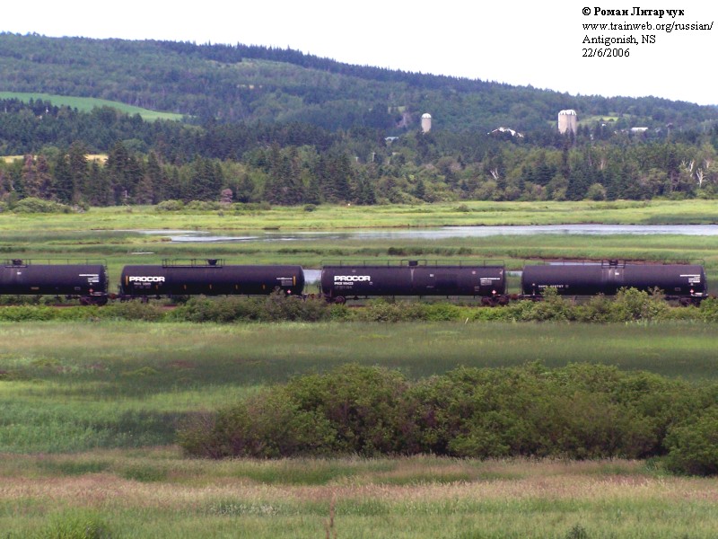 Five black colored LPG tankers of  Procor and SHPX markings bring up the rear. Usually mixed among them are white colored GATX tankers. Note that all of the tankers except for the new stripped one have a spill coming from the dome.