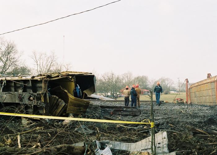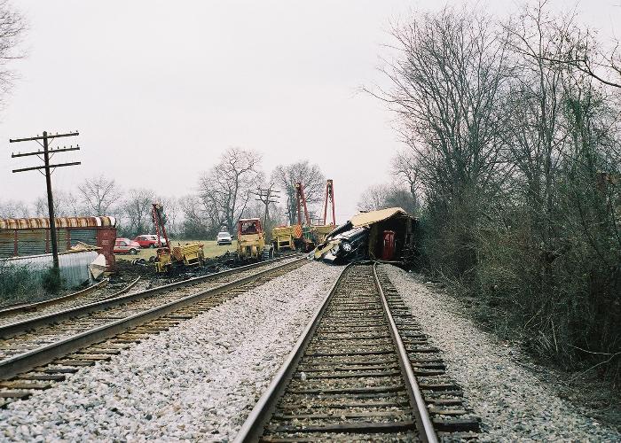 Gallatin, TN Derailment These pictures show the derailment in Gallatin, Tennessee on January 16th, 2005. The CSXT route through Gallatin is a former L & N Line. A good deal of the line’s business is the moving of automobiles. Notice the Chrysler minivans sticking out of car carriers in some of the pictures. It was announced later that a defective coupler was responsible for the front portion of the south-bound freight jumping the tracks. |