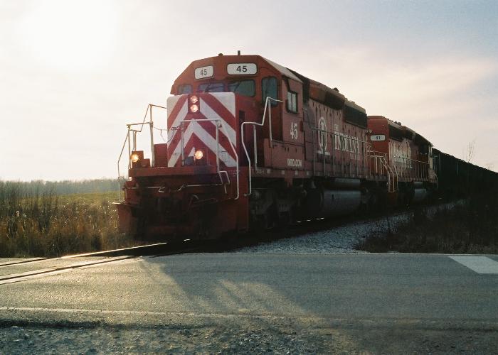 Indiana Railroad The Indiana Railroad is an active short-line running from some point in Illinois to Indianapolis, Indiana. It is one of several short lines that purchased right-of-way from the former New York Central Railroad. The pictures on this page show coal being hauled from mines near Brazil, Indiana to Indianapolis Power and Light Company in March of 2005. |