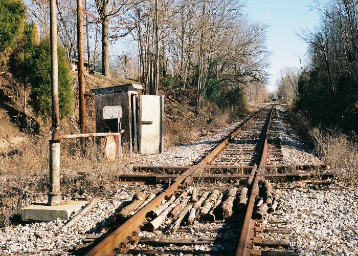 Moorman, Kentucky The abandoned route from Owensboro to Moorman was constructed in 1871 as the Owensboro and Russellville Railroad. It later became property of the L & N and eventually CSXT. The stretch from Owensboro to Livermore was abandoned in 1984. In 2000, CSXT abandoned the section from Livermore to Moorman. Rails remain on the portion from the river near Livermore and connect with an active CSX east/west line south of Moorman. From Livermore, north to Owensboro, the rails have all been removed, but the right of way is clearly visible in many spots from HWY 431. The Bridges are gone and yellow guard rails are in place in some spots of the ROW. However, some road crossing signal flashers mysteriously remain years after the line was taken out. A small park in Livermore pays tribute to the former line and displays a restored L & N caboose. The Line crosses highway 431 about four miles north of Moorman. This spot has what looks to be the remains of a reversing wye, and a diamond where another railroad crossed. The other railroad is totally gone. On my first visit in early 2004, CSX was using the Moorman end to store rolling stock that needed repairs. On my second visit in late 2004, all of the rolling stock had been removed. The most interesting feature of the line is a massive draw bridge which the railroad used to move trains over the river about seven or eight miles north of Moorman. The bridge was turned north/south for trains to cross and now remains in tact in the east/west position to allow the passage of river traffic. |