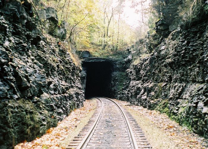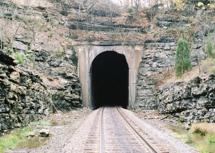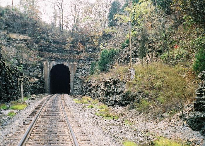South Tunnel South Tunnel is actually two tunnels on the CSX, former L & N line, between Nashville and Louisville. They are located a few miles north of Gallatin, TN. The two are separated by about 200 feet of open track in a valley. South Tunnel has an interesting history, as it was blown up and blocked by Union troops during the Civil War. |