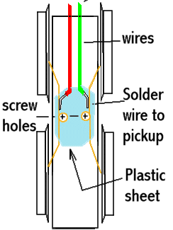 mounting screws. Solder thin insulated wires to the pickups near the center