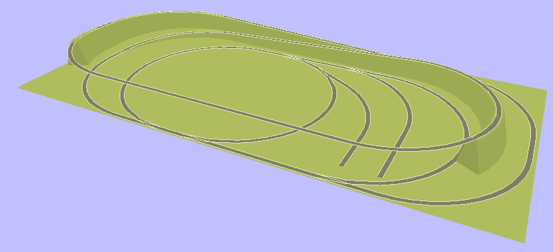 Brian (Johns) really liked the 2-level action on my 4x8 contest layout #1 (Paul). He wanted a little more action, however, so he modified it a bit by adding more switches and a couple of loops. As a result the grades do increase.