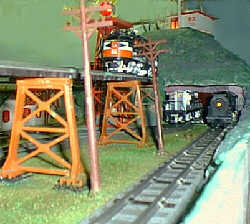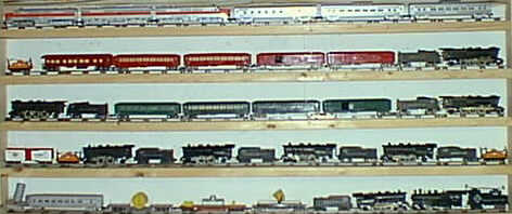 Operation of Three trains at once is common. The inside loop takes two complete trips around the layout for the completion of one revolution. The outside loop runs independently and follows the L shape of the layout. Crossover switch tracks are available to transverse from the inside to the outside,and also escape tracks. We operate all the engines and rolling stock we have and still enjoy "racing" each other through the turnouts!