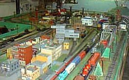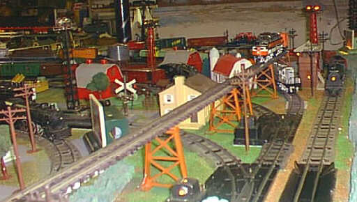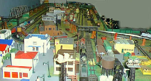 1/4 of the layout containing 771 Cattle Yards, Interchange and storage racks, Marx Yard Towers, Rotating Beacon, Whistling Billboards and Plasticville buildings. Approximate size 15' x 10' |