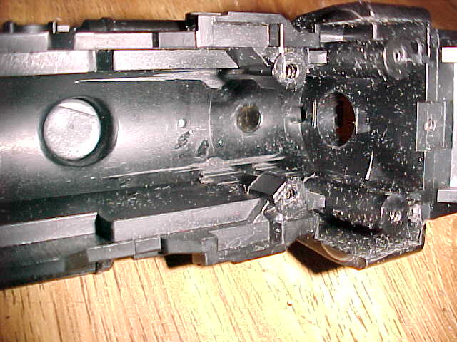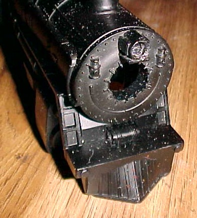 Machined hole in boiler front of AF # 307 Inside view of hole in boiler front...look close as the chassis mounts have also been machined to allow camera to fit Close up of camera installed in AF # 307.