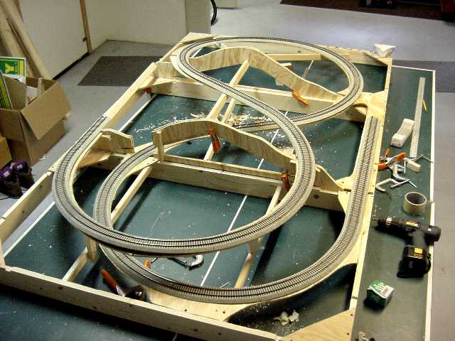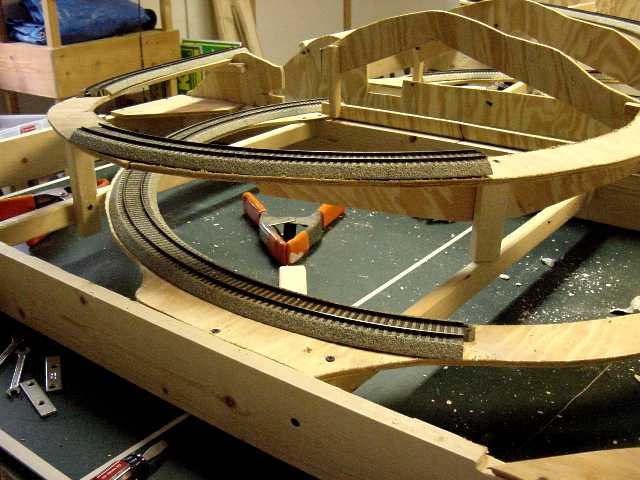 2) I used the track sections as a pattern to make a plywood sub-roadbed