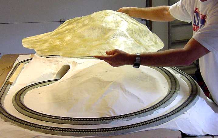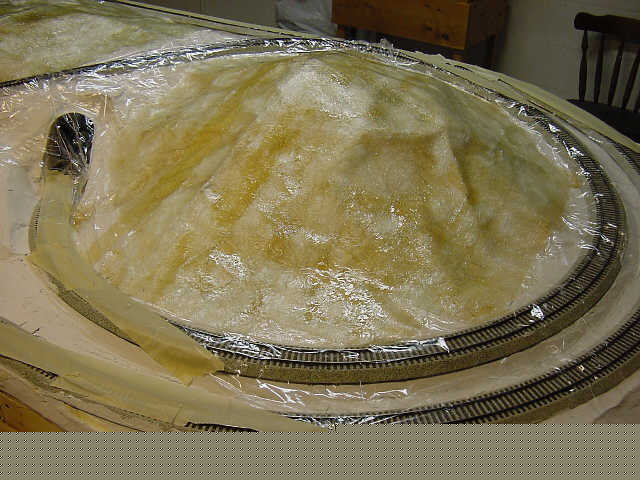 5) Remove the track , and drape stiff paper, fill voids with popcorn