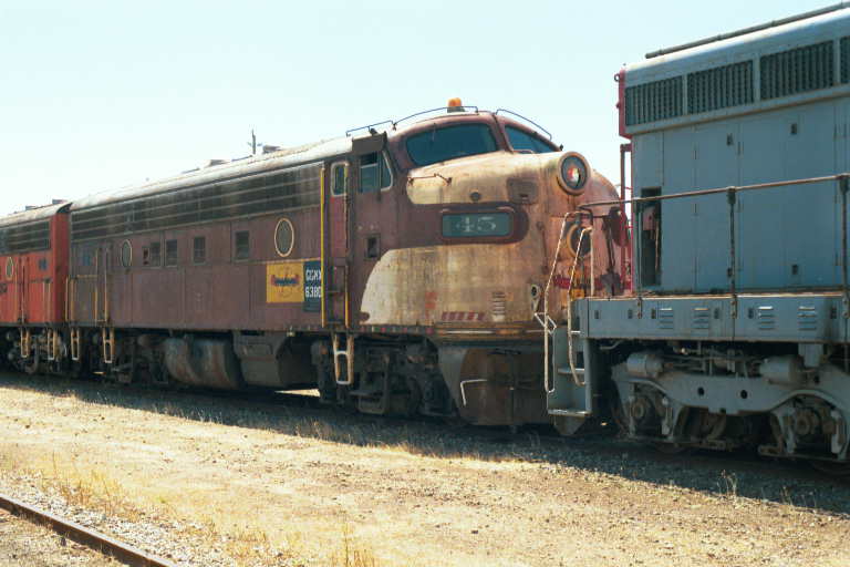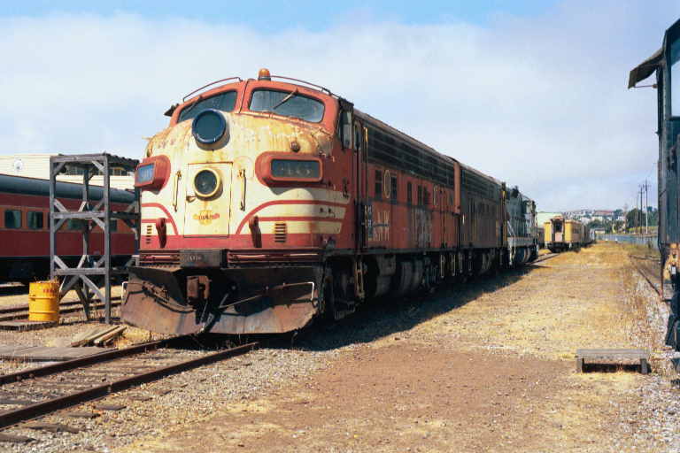 in San Francisco with many Southern Pacific Geeps, F-3s and passenger cars.