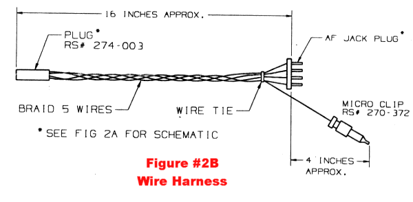 1. Hook the AC input wires of the tester to the base and 7-15 volt posts of a transformer. 2. Plug the wire harness with the AF jack plug (figure #2B) into the tester and the jack panel of the locomotive. 3. Set switch “A” to off (center position). Set switch “B” to BFFB. 4. Plug the wire harness with the AF jack plug figure #2B into the tester and the jack panel of the locomotive. Then hook the loose gray wire with the micro clip from the harness to the fifth wire lug on the engine jack panel. The simplest thing to do is to remove the two jack panel screws and pull it out, and then clip the gray lead on the lug from the inside and from the top. This eliminates the need to unsolder that wire, but I prefer to unsolder it and get the tender out of the way. The gray wire is hot and should be kept from touching the locomotive when not in use. An additional on/off toggle switch may be installed to turn the gray wire off when not needed. Note: The fifth wire only supplies current to the smoke unit and headlight and is independent from the motor. |