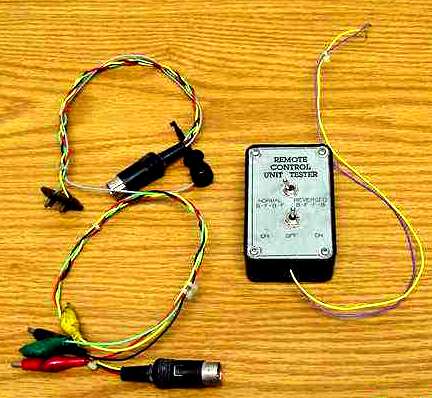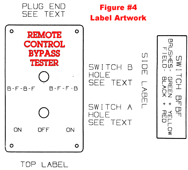 1. Hook the AC input wires of the tester to the base and 7-15 volt posts of a transformer. 2. Plug the wire harness with the alligator clips, figure #3 into the tester. 3. Set toggle switch “A” to off (center position) then set toggle switch “B” to the BFBF position, because that is the only position that matches the color code of the harness. 4. Using the color code, hook the green and yellow wires to the brushes and the red and black wires to the field. See the label on the side of the tester for reference. 5. Now lock the remote control unit in neutral. (This is when two of the four figures are on the plastic part of the drum.) 6. Set the transformer to run half to three quarters speed; toggle switch “A” back and forth to run the engine in both directions; center position is off. This is great for aligning the field in diesel power trucks prior to installing them in a chassis. For any questions or comments, contact Shawn Solderitch, P.O. Box 252, Bath, PA 18014-0252. |