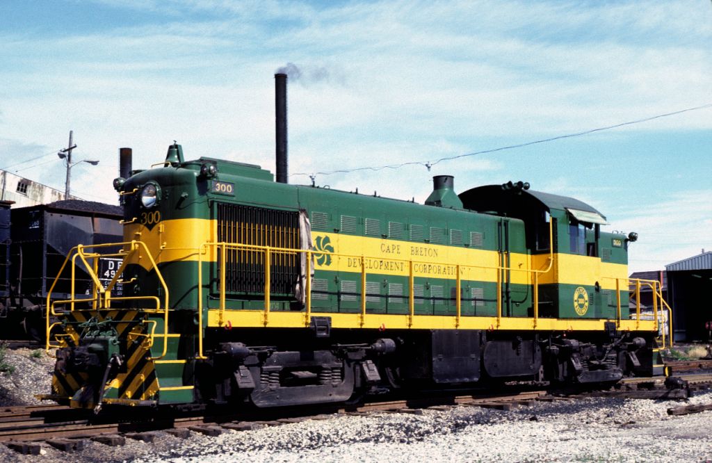 Devco Railway RS-1 #300 is seen in fairly fresh paint on September 20, 1982. Built in 1951 by ALCo for Wisconsin Central, it was acquired by the S&L in 1961.>(Collection of K. Jones Jr.)