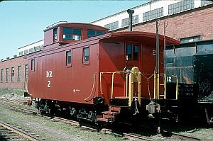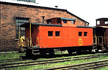 Devco Railway Caboose #2 is seen in fairly fresh paint alongside the Glace Bay shop on June 3, 1976.>(Collection of K. Jones Jr.)