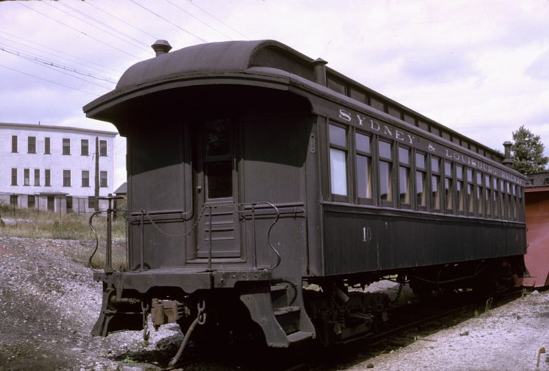 Sydney & Louisburg coach #10 is at rest in the Glace Bay yards. The S&L plow can be seen