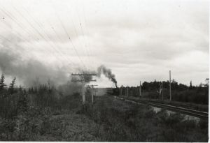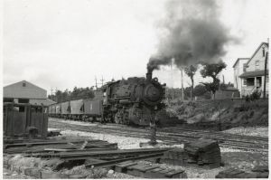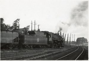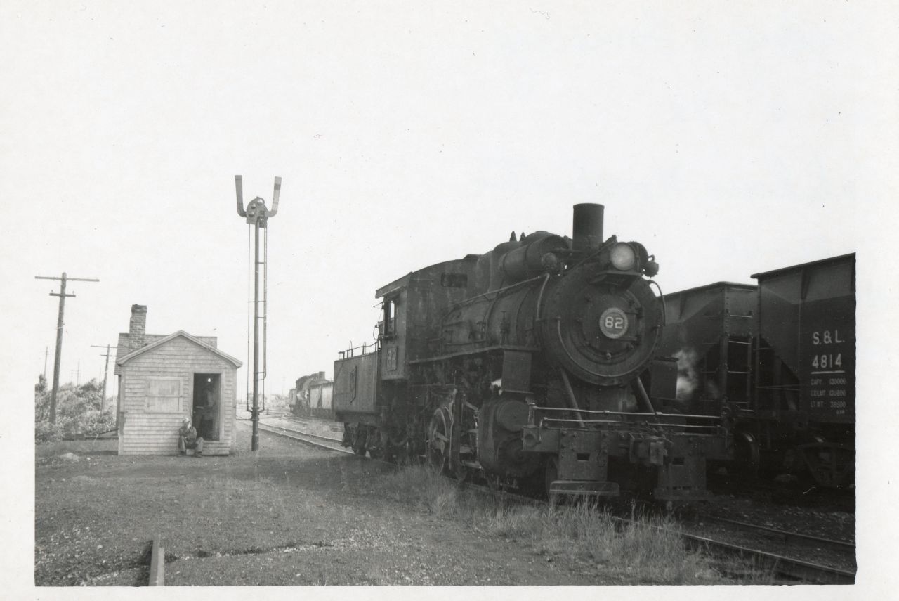 Sydney & Louisburg 2-6-0 #82 is sitting at Caledonia waiting while another train switches the yard on July 21, 1960.>(Collection of K. Jones Jr.)