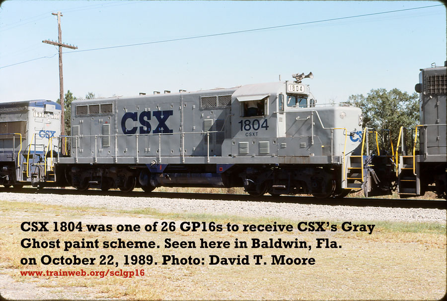 - CSX Paint: 39 GP16’s were painted in CSX paint. 1700, 1705, 1711, 1719, 1726, 1727, 1731, 1733, 1740, 1745, 1746, 1748, 1749, 1750, 1753, 1756, 1757, 1759, 1770, 1771, 1778, 1788, 1792, 1794, 1797, 1798, 1799, 1801, 1804, 1816, 1819, 1821, 1822, 1834 1837, 1841, 1842, 1854, and 1860.
