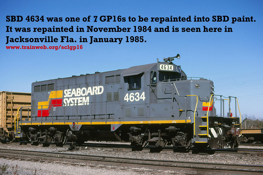 - SBD 4634 painted SBD 11/84 Imron. Checked 3/31/1991 on CSX 1734 in Newberry Fla.