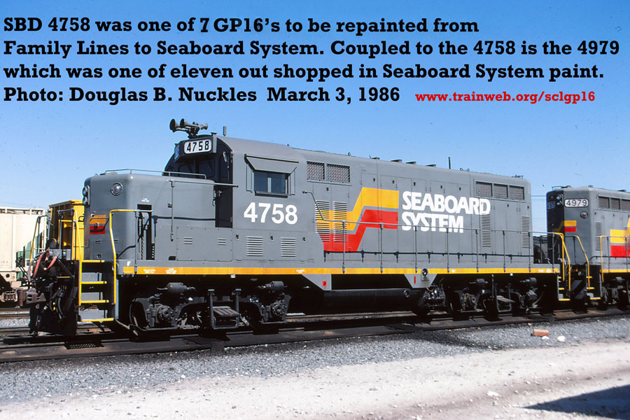- Units 4645, 4802 – 4809, 4978, 4979 Received Seaboard System Paint at Waycross Ga Shops and never wore Family Lines paint as a GP16.