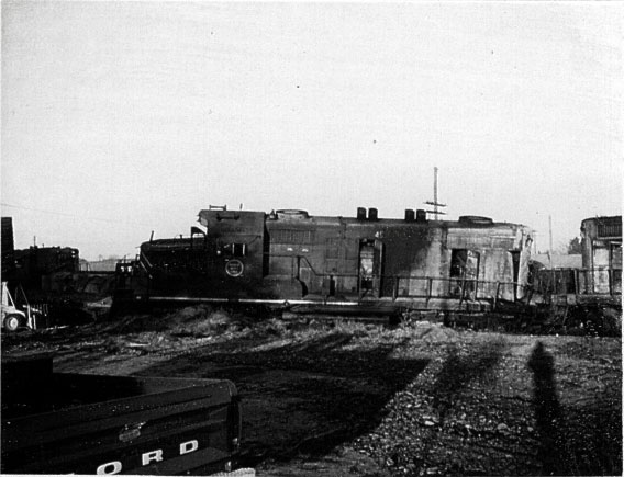 #225 lays among the wreckage. The unit was traded in to EMD on the