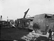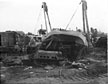 derrick crane attempts to move one of the GP18s involved in the collision. |