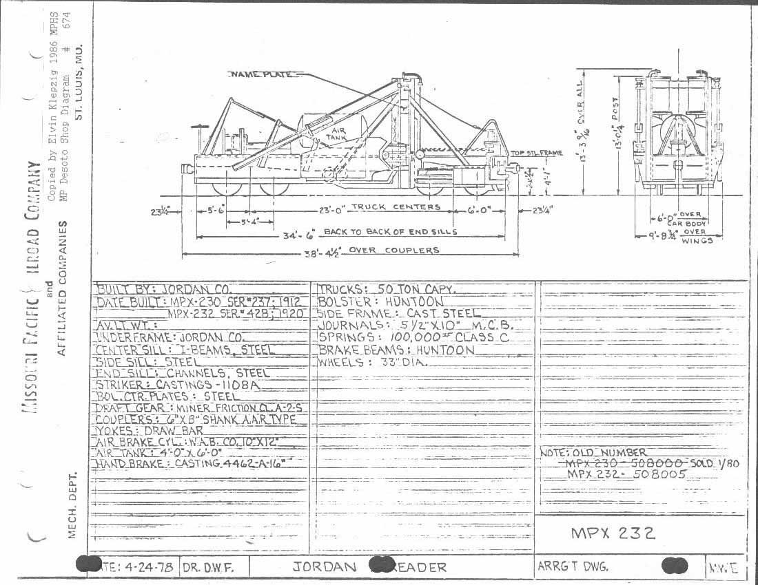 MP X 232 - DeSoto Shops diagram of the Jordan Spreader dated 4/24/78. - scan provided by Elvin Klepzig |