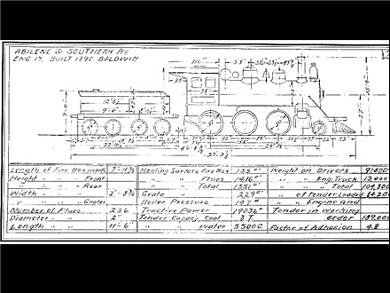 | Schematic Drawing of Abalene & Southern 2-8-0 #17 from T&P Records - Courtesy Walter Robbins Collection, Brown Library, Abilene Christian University, used with permission |