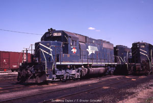 GP35s in sparkling new screaming eagle paint at Ft. Worth