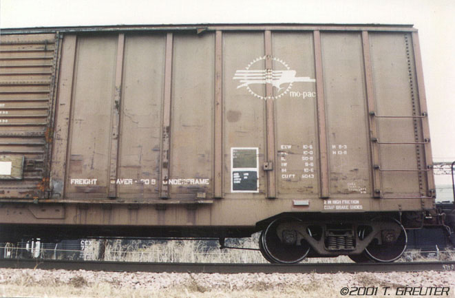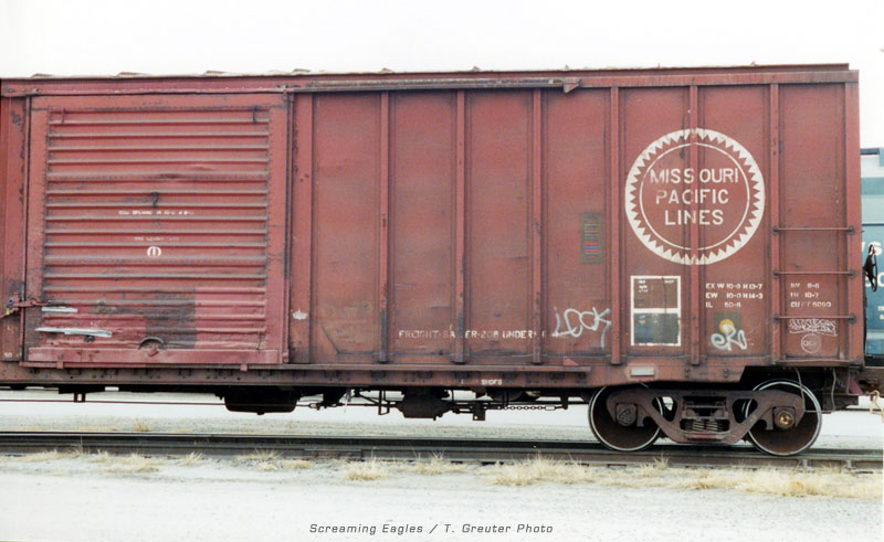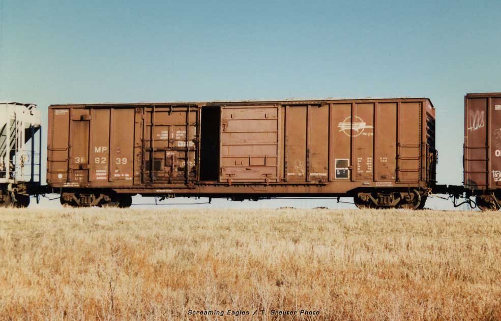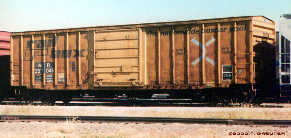 MP 357045 - 50' Single-door Railbox lettered for MoPac. Lincoln, NE - T. Greuter Photo |